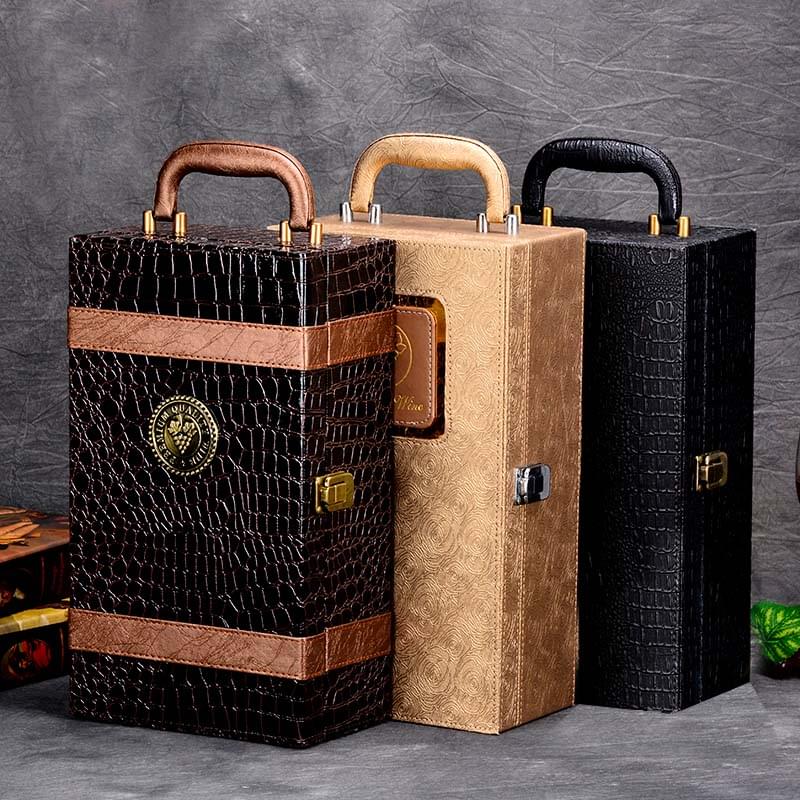Hộp rượu bằng da với mẫu mã hoa văn đẹp mắt là một trong các mẫu hiện được bán chạy nhất tại công ty quà tặng Thiên Vân. Đây cũng là món quà các doanh nghiệp lựa chọn để tặng khách hàng VIP tạo lên sự khác biệt và đẳng cấp cho quà tặng tết.